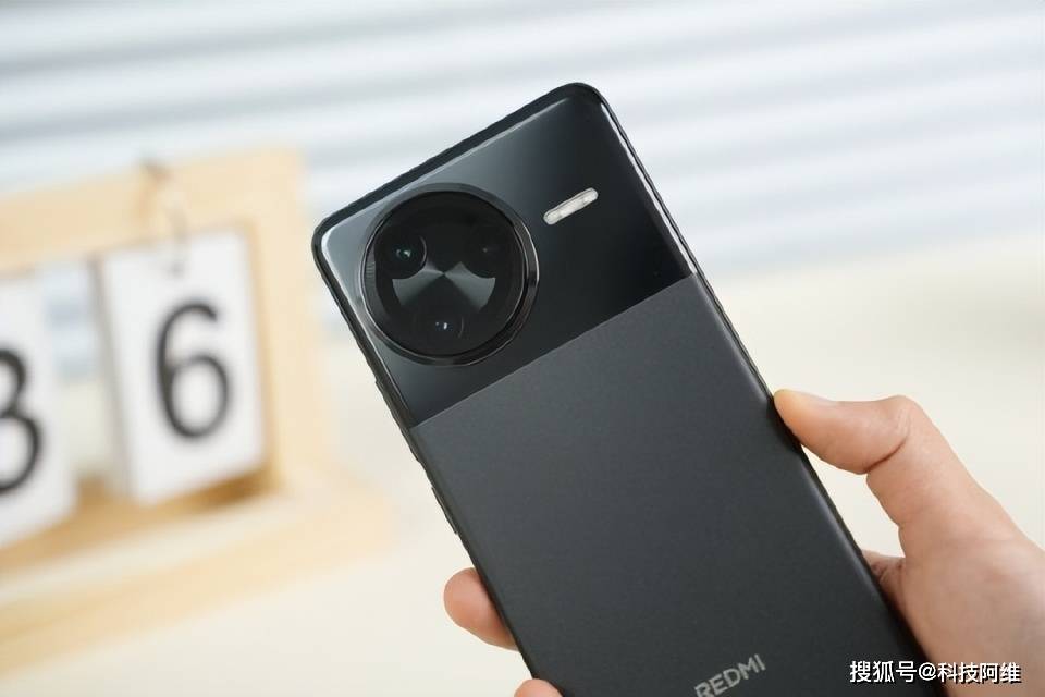 红米K80 Pro的外观设计和红米K80一样,背面三分之一是光面,两部分是雾面,手感细腻,光影过渡柔和,中框的弧度做得不错,握在手里有点磨砂瓷的质感,那个等边三角形的“暴风眼”镜头模组一开始看可能有点怪,但用久了会觉得挺有辨识度,包括它的续航也还行,6000mAh的电量,搭配的是120W有线W无线快充的组合。