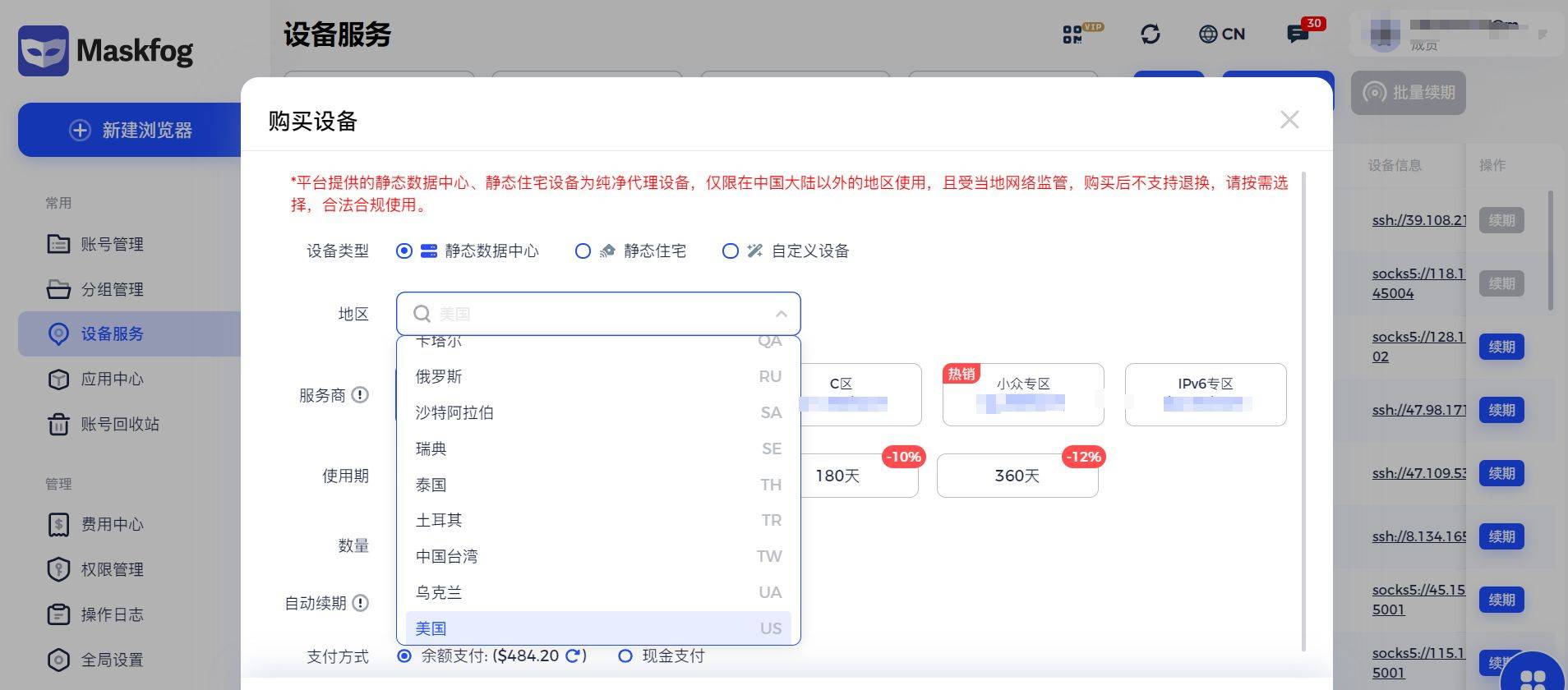 或许跨境账号都需要做好账号的防关联,包括设备指纹、IP地址等重要的参数,而指纹浏览器则是完成这些动作的标准答案。你可以在Maskfog中为账号建立全新独立的指纹环境,保证账号环境安全,并且通过设备服务配备独享的静态代理IP。