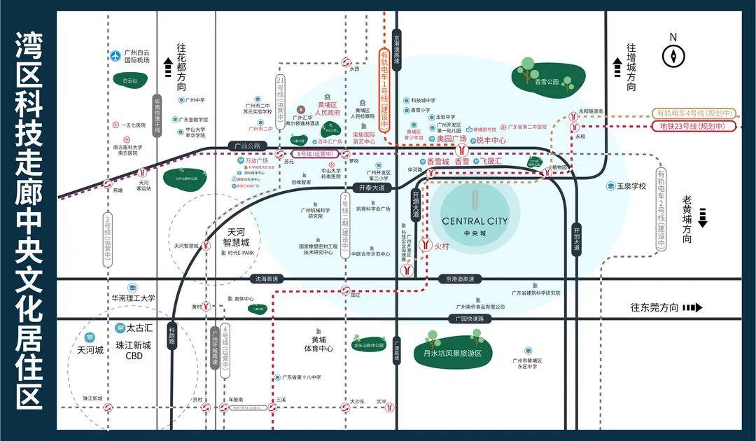 周边更有国际体育演艺中心、黄埔区图书馆(香雪馆)、黄埔区少年宫(萝岗宫)三大文化地标,感受独特的人文魅力。