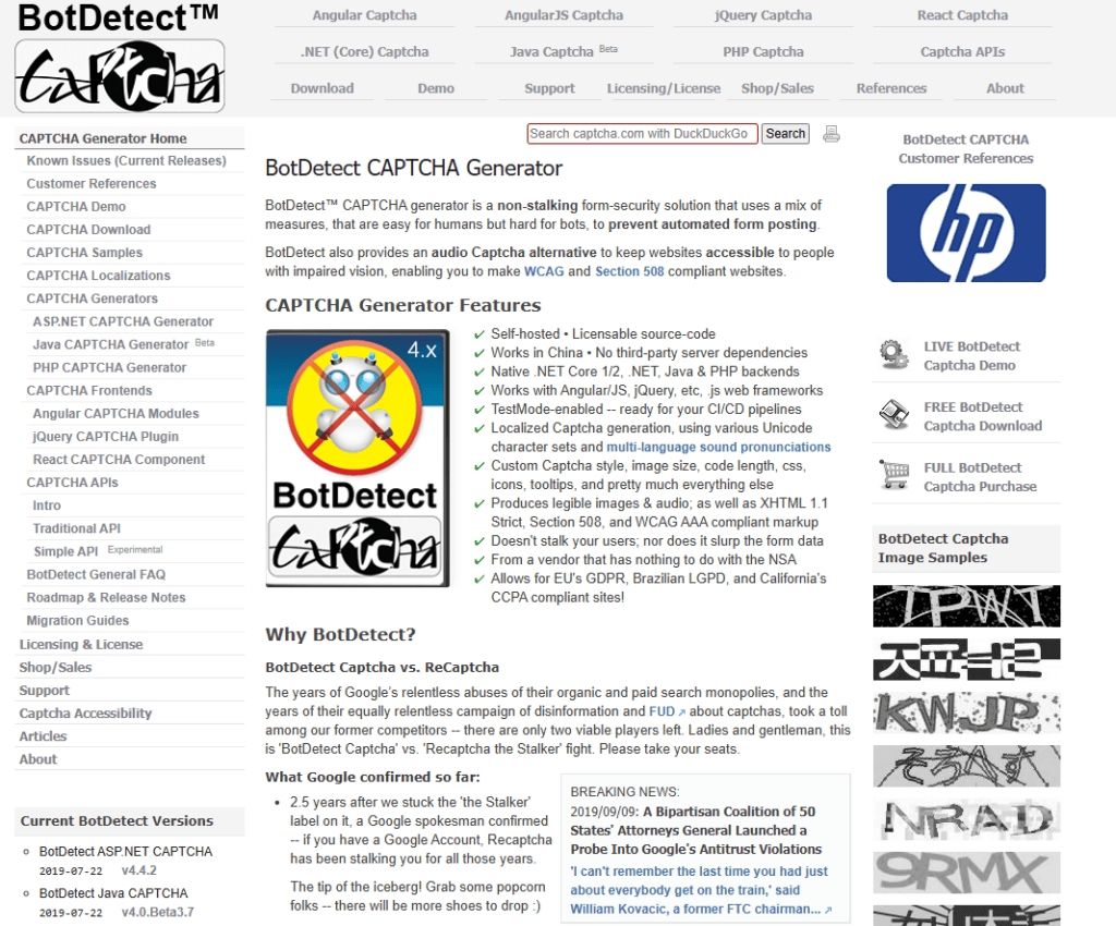 BotDetect 是一款历史悠久的传统验证码解决方案,以提供海量的个性化图案和样式而知名。它支持多种开发环境(如PHP、Java 等),其设计初衷是通过极为复杂的字符变形和背景干扰来对抗 OCR 识别技术。