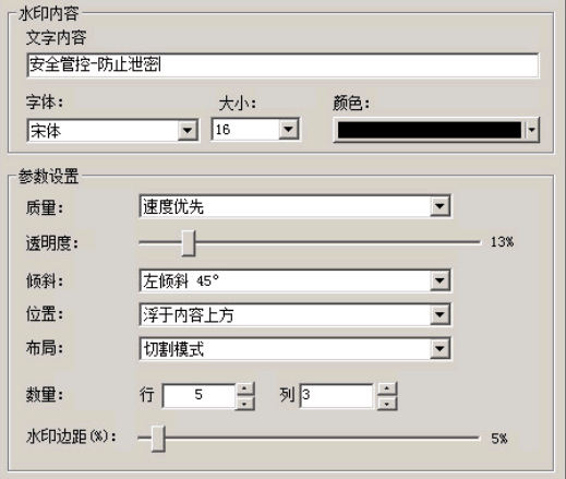 敏感内容水印警示:根据不同密级文件,设置不同的水印、水印文字内容大小、水印颜色、水印行数列数。