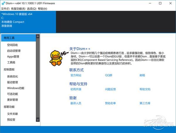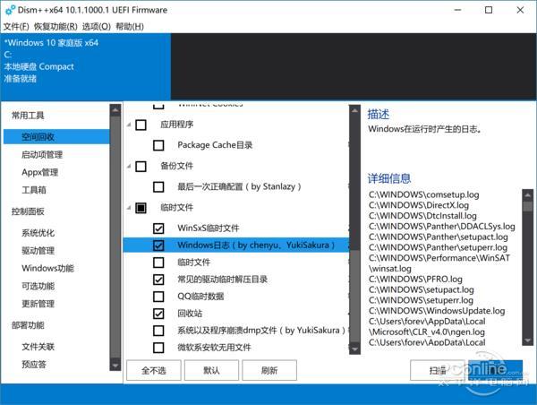 功能方面,DISM++提供了非常全面的清理功能,而且还有黑科技般的备份和恢复!DISM++支持热备份,就算是系统在运行着,DISM++也是能够备份的!