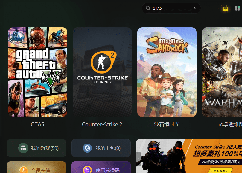 如果说在玩这款游戏的时候,确实出现了卡顿、闪退、延迟、无法进入游戏、黑屏等现象的话,那其实大概率就是网络不稳定导致的,所以这个时候可以使用奇游工具来解决问题。直接打开奇游工具搜索GTA5,然后点击进入详细页面。