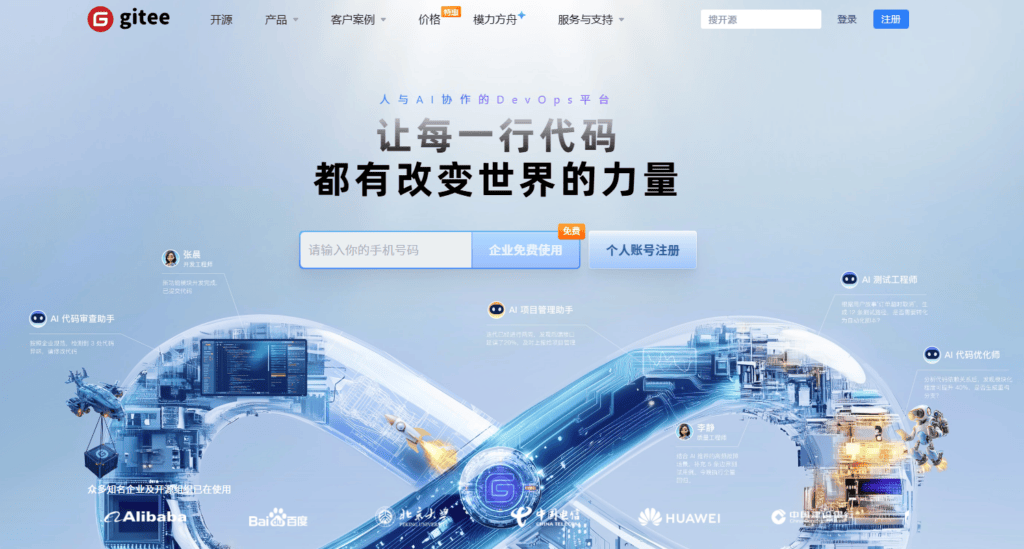 推荐理由:作为国产代码托管的标杆,Gitee 深度适配国内开发者的使用习惯,访问速度极快;提供从需求起源到代码入库的端到端追踪能力;支持灵活的私有化部署,满足金融、政企等行业对代码资产安全与国产化替代的严苛要求。